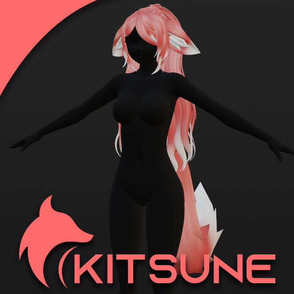 A set of floppy fox ears and a fluffy fox tail for VRChat or other social VR platforms.